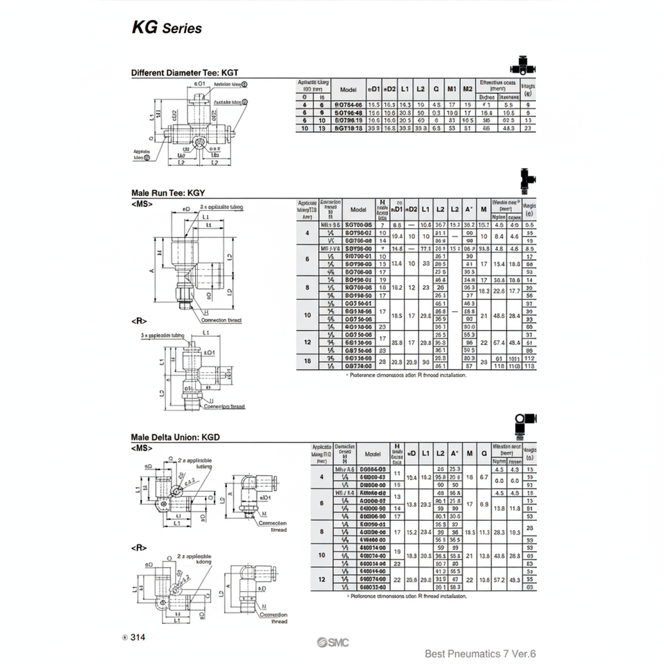 นิวเมติก SMC ฟิตติ้งแบบ one-touch KGY04-M5ชิ้นส่วนนิวเมติก