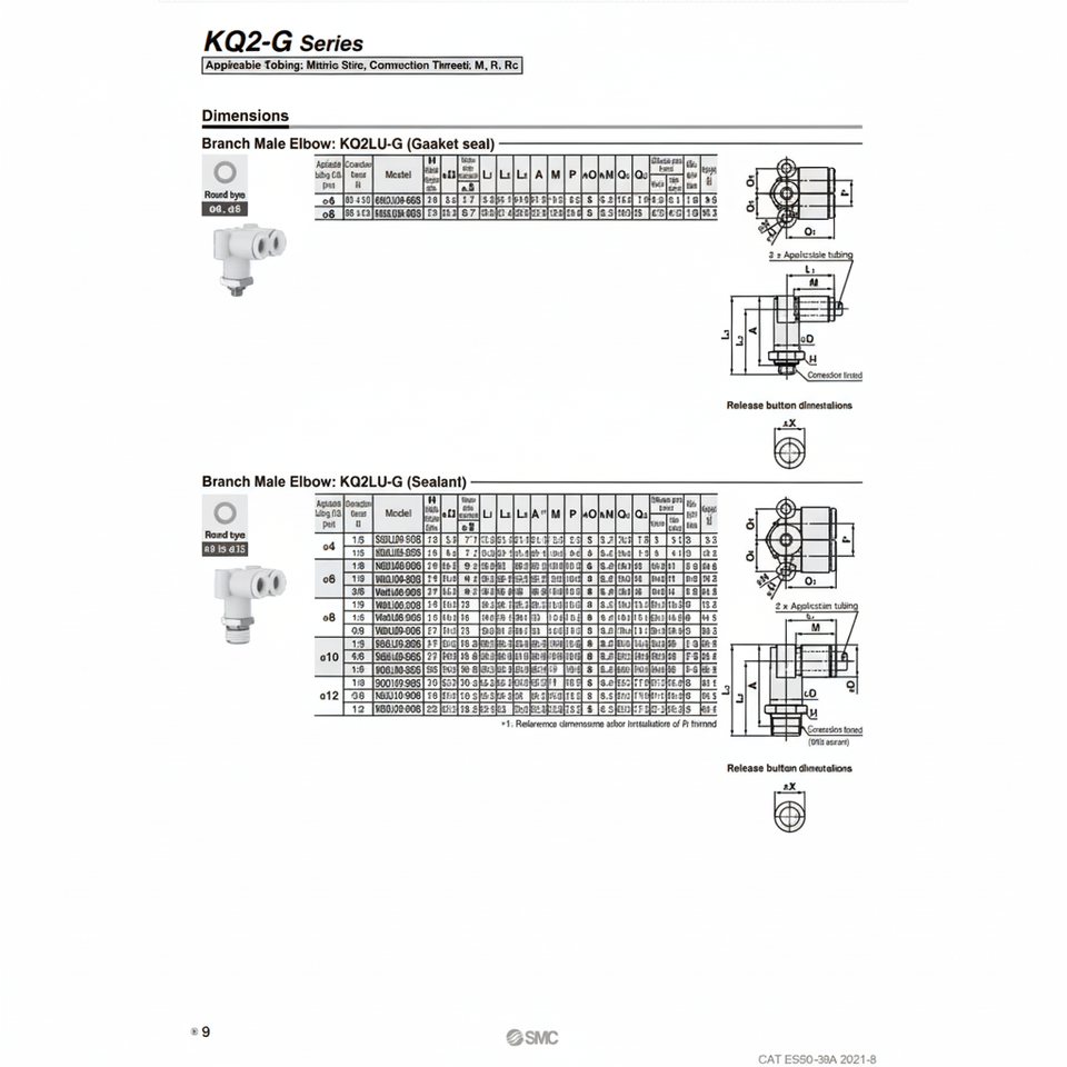 นิวเมติก SMC ฟิตติ้งแบบ one-touch KQ2LU06-01GS ชิ้นส่วนนิวเมติก