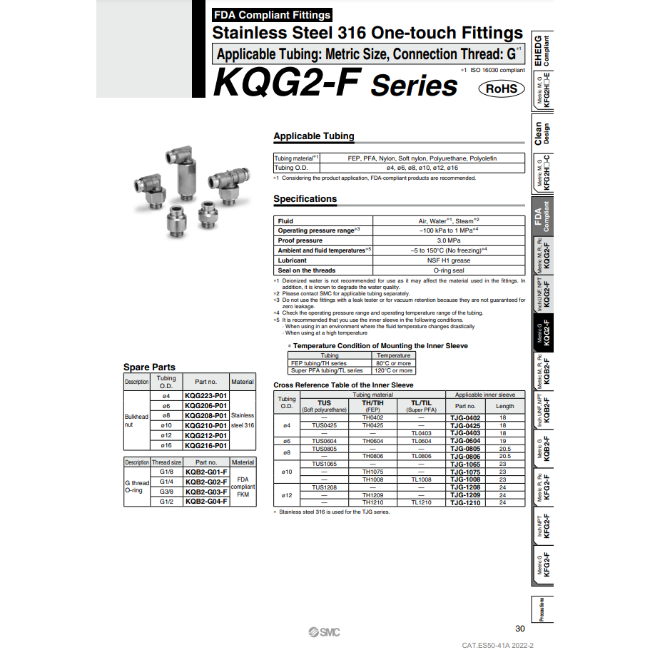 นิวเมติก SMC ฟิตติ้งแบบ one-touch KQG2L12-G03-F ชิ้นส่วนนิวเมติก