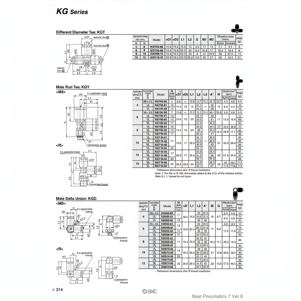 นิวเมติก SMC ฟิตติ้งแบบ one-touch KGY16-03S ชิ้นส่วนนิวเมติก