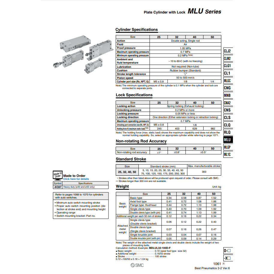 MDLUB50-10DM-B ทรงกระบอกแผ่นนิวเมติก SMC พร้อมผลิตภัณฑ์กระบอกสูบล็อค