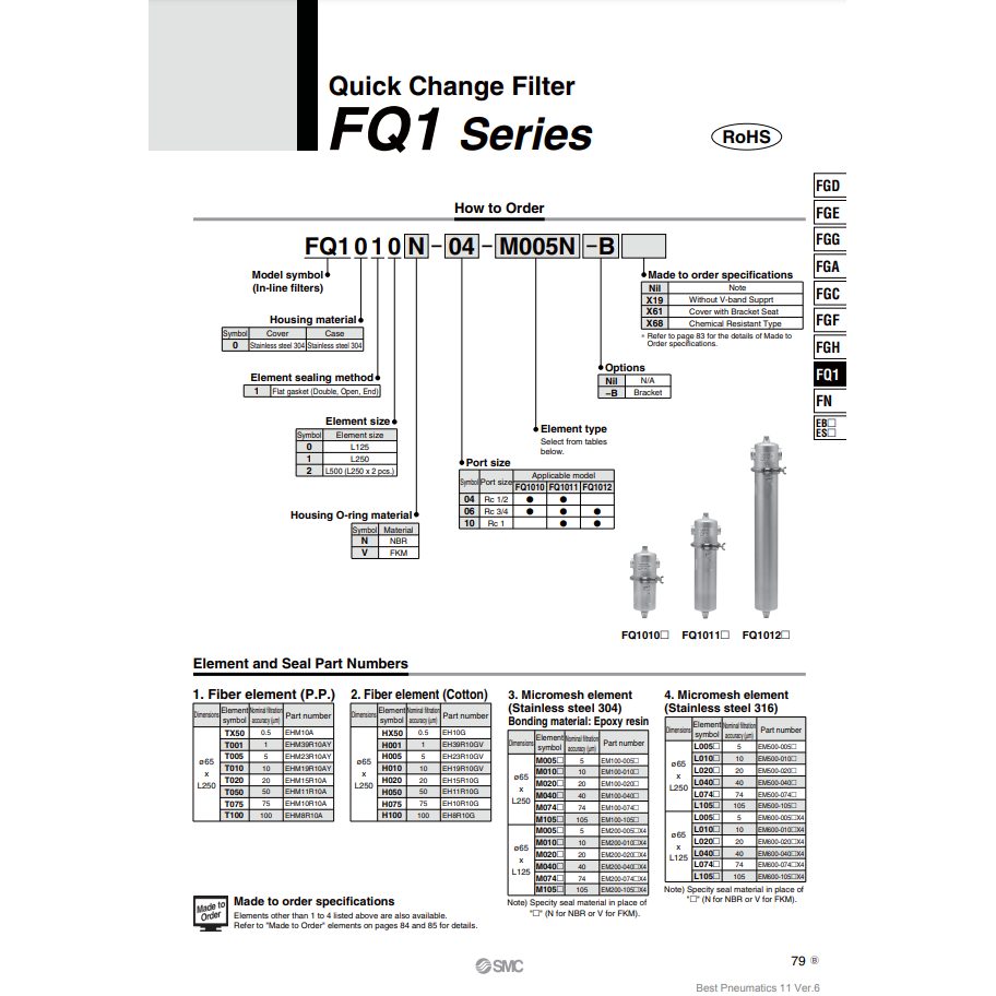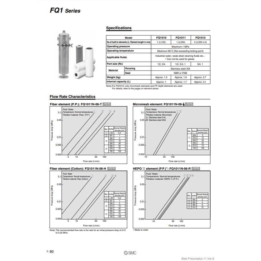 FQ1011V-10-M074V กรองอากาศ SMC pneumatics เปลี่ยนแปลงอย่างรวดเร็ว