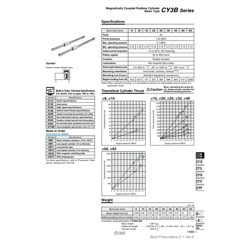 SMC นิวเมติกส์กระบอกก้าน CY3B10-150ผลิตภัณฑ์ประเภทกระบอกสูบ