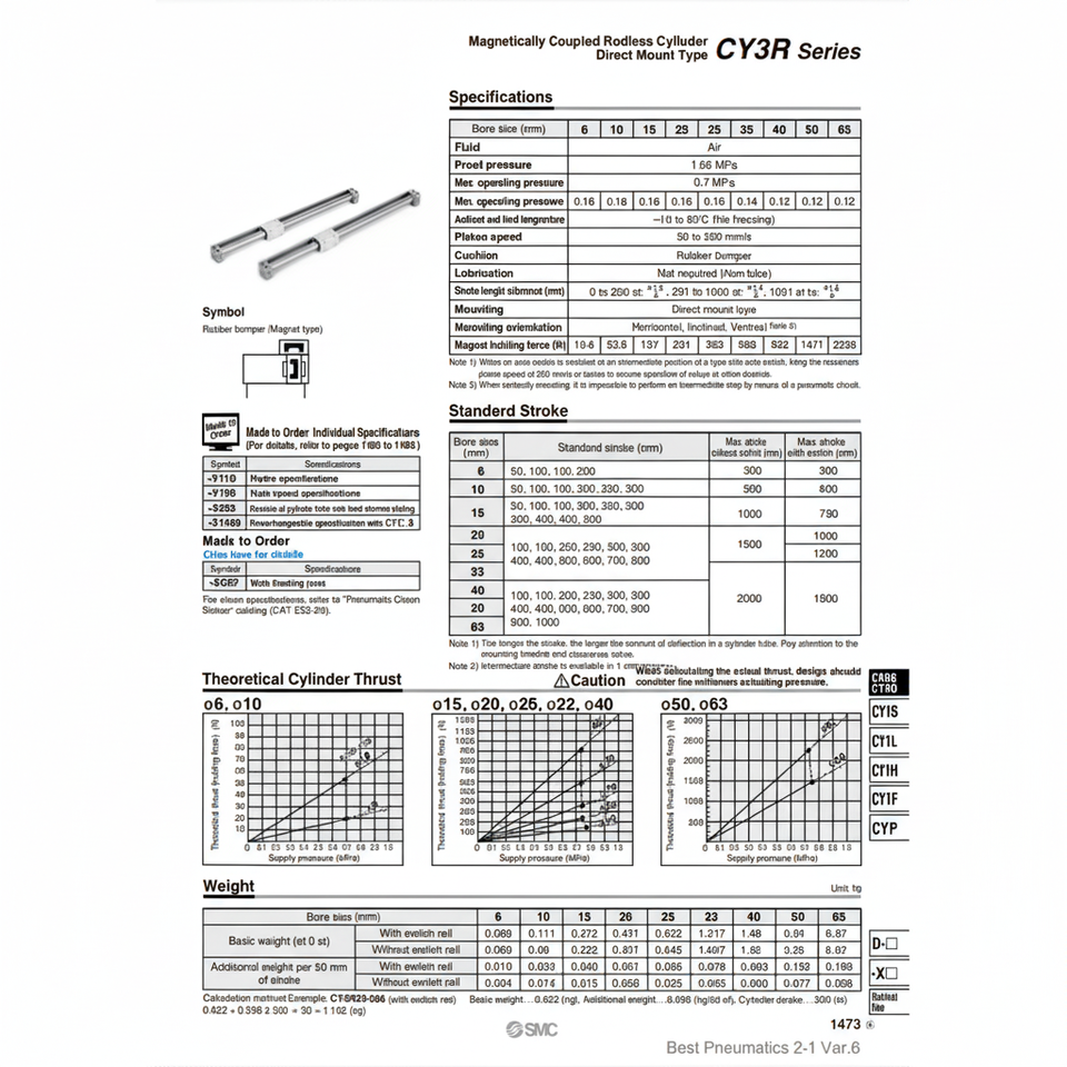 SMC นิวเมติกส์กระบอกก้าน CY3R10-150ผลิตภัณฑ์ประเภทกระบอกสูบ