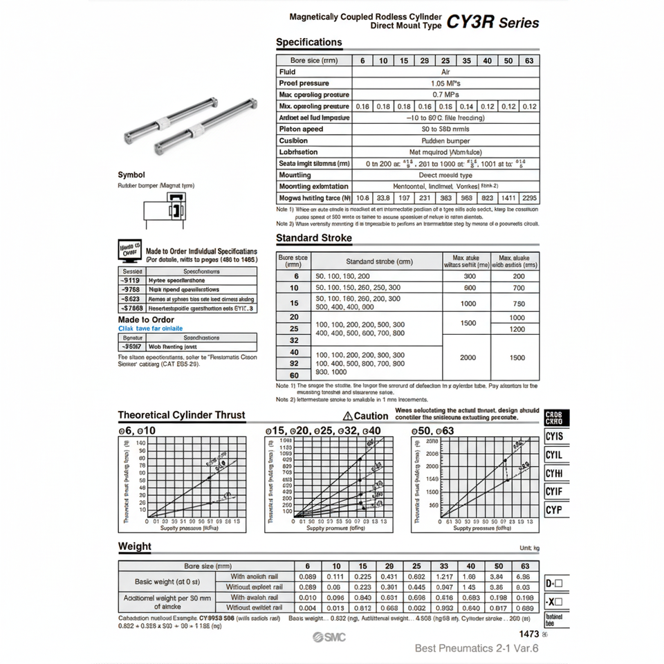 SMC นิวเมติกส์กระบอกก้าน CY3R20-450ผลิตภัณฑ์ประเภทกระบอกสูบ