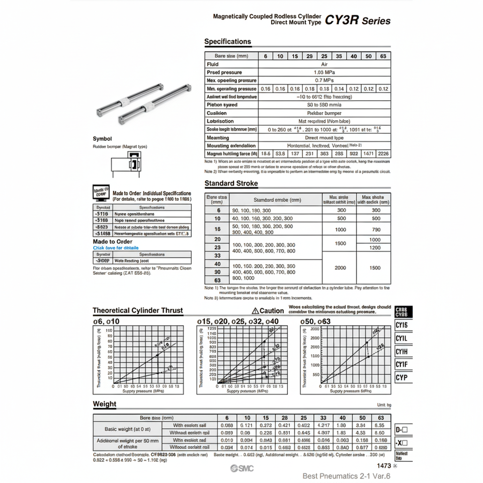 SMC นิวเมติกส์กระบอกไม่มีก้าน CY3R20-600ชิ้นส่วนนิวเมติก