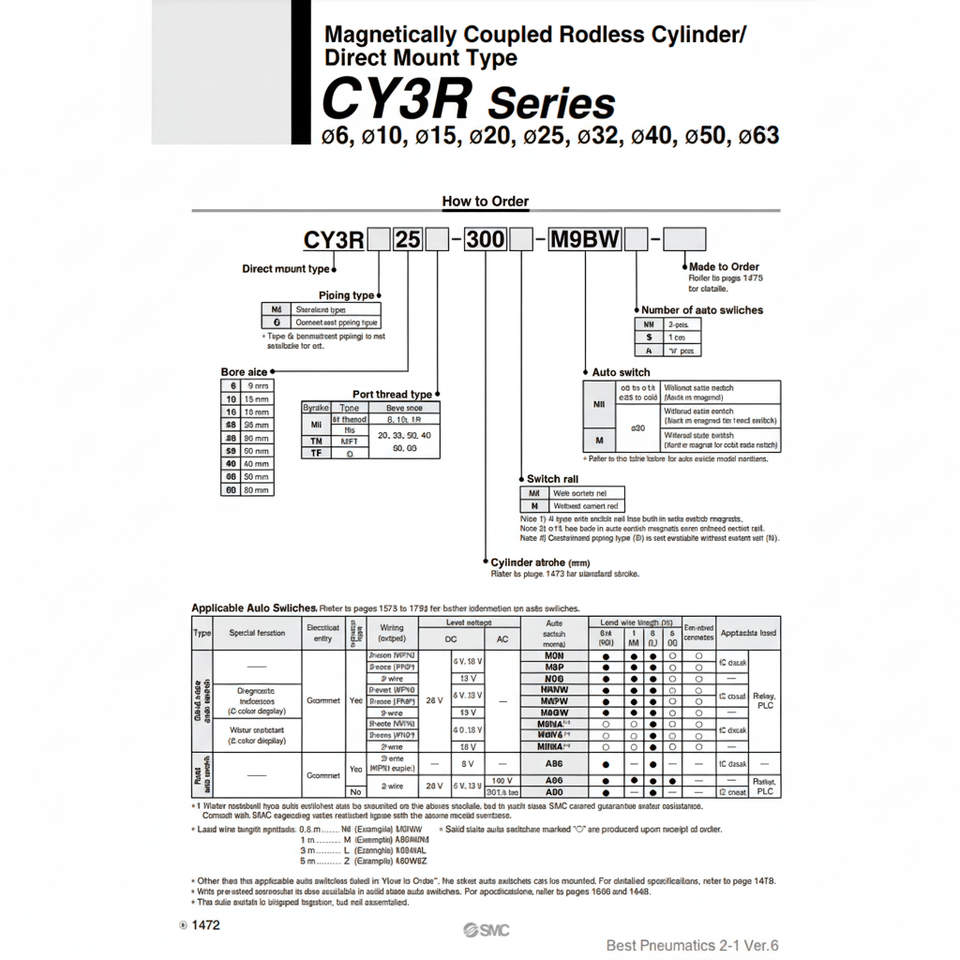 SMC นิวเมติกส์กระบอกก้าน CY3R20-650ผลิตภัณฑ์ประเภทกระบอกสูบ