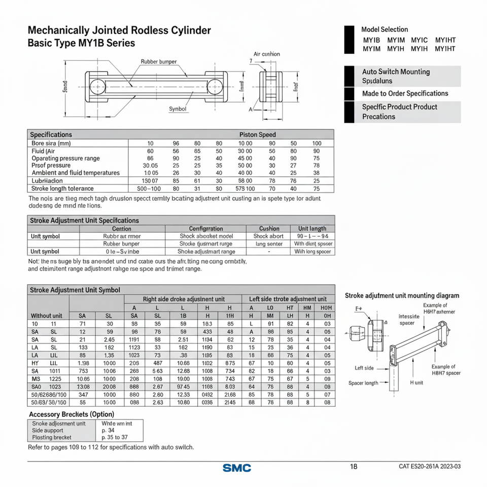 SMC นิวเมติกส์กระบอกไม่มีก้าน MY1B20-300หมวดหมู่ผลิตภัณฑ์กระบอกสูบร่วมโดยใช้กลไก