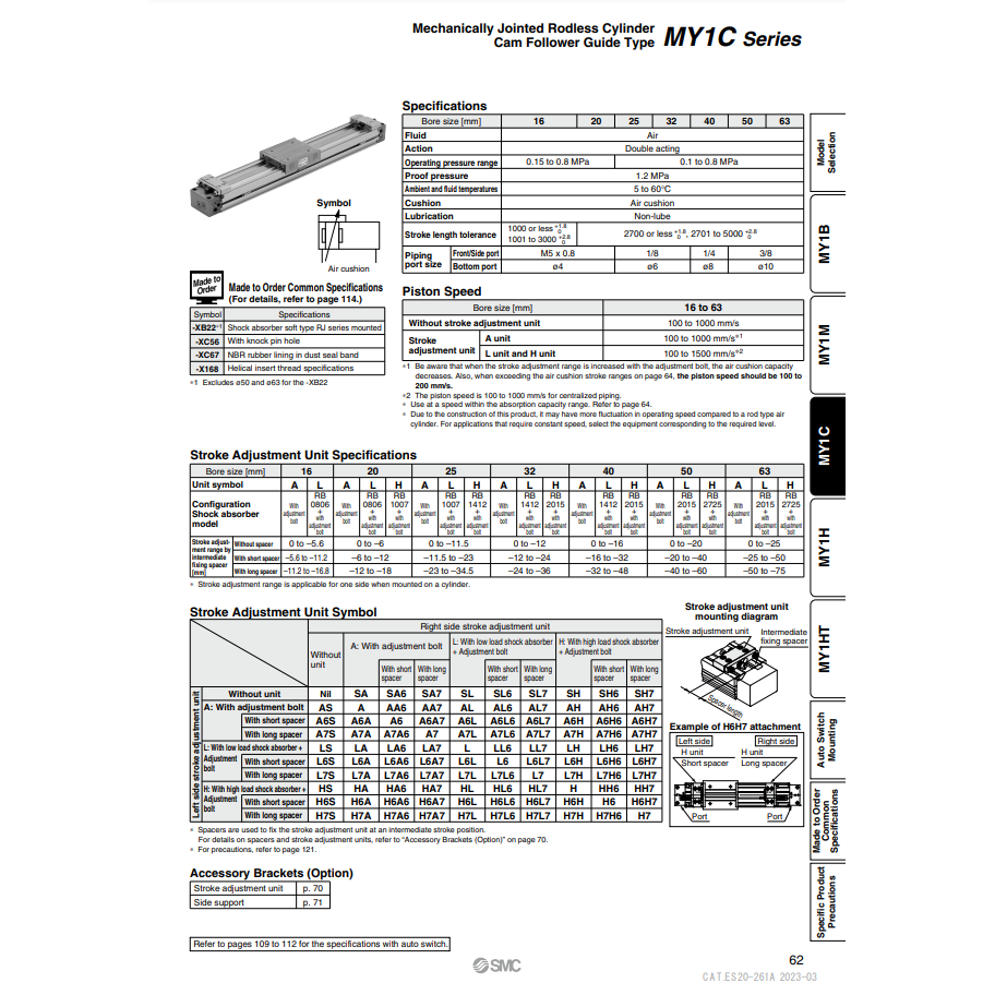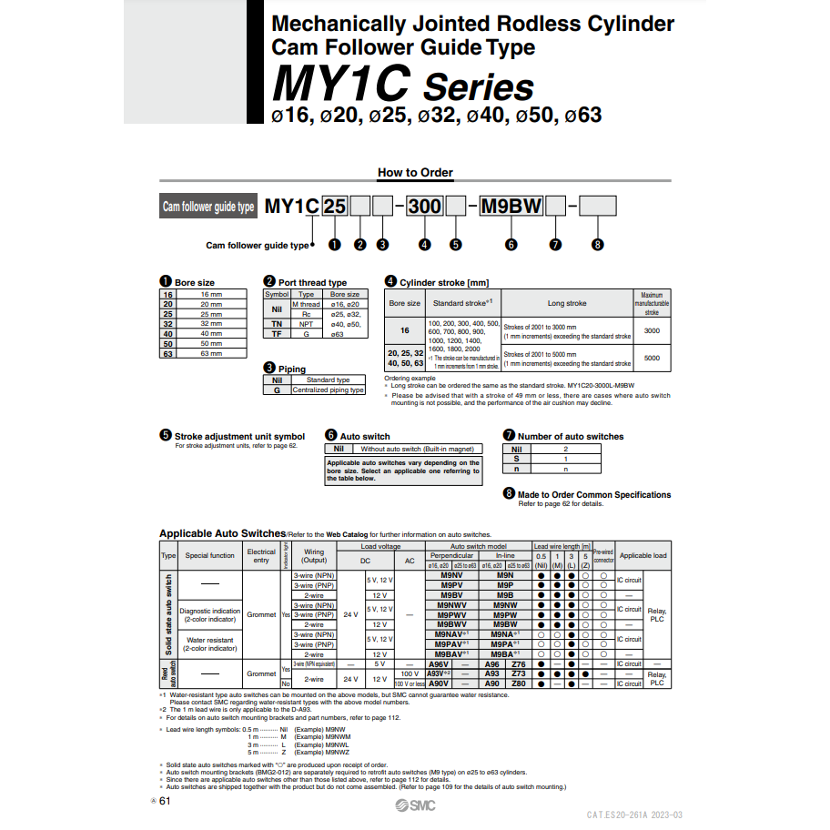 SMC นิวเมติกส์กระบอกไม่มีก้าน MY1C40-340H หมวดหมู่ผลิตภัณฑ์ที่มีกลไกร่วมกัน