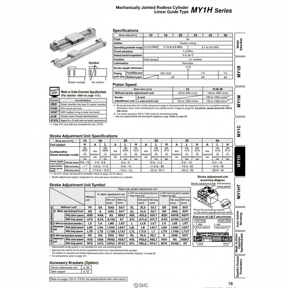 SMC นิวเมติกส์กระบอกไม่มีก้าน MY1H20-400H หมวดหมู่ผลิตภัณฑ์กระบอกสูบร่วมโดยใช้กลไก