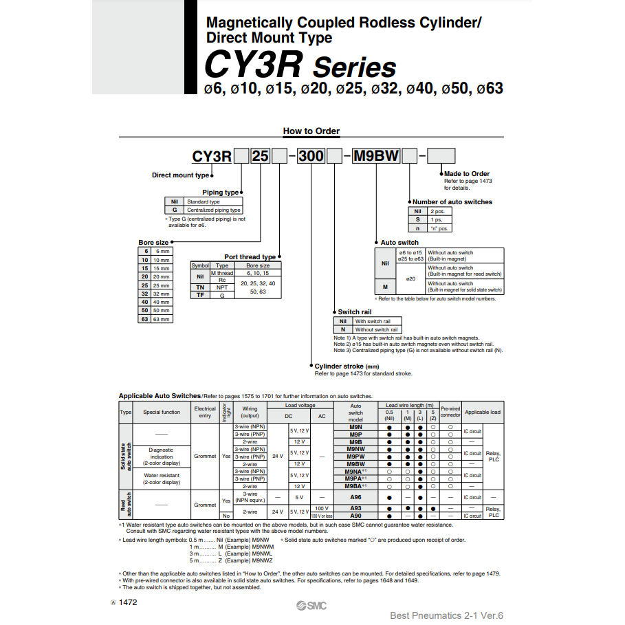CY3R40-200รุ่นกระบอกลมนิวเมติก SMC