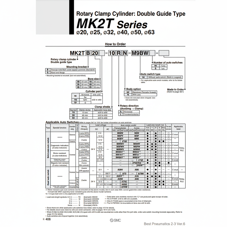 กระบอกลมแบบหมุนสำหรับ MK2TB25-20R สินค้าเกี่ยวกับนิวเมติก SMC