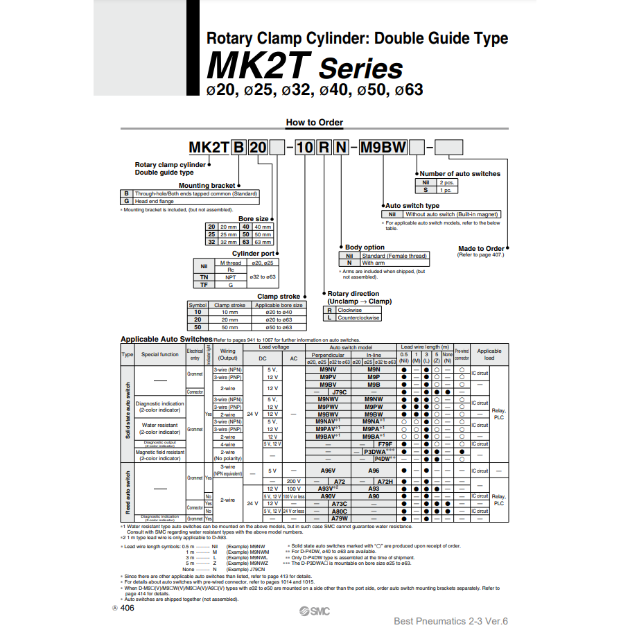 กระบอกลมแบบหมุน MK2TB63-20RN ชิ้นส่วนนิวเมติก SMC