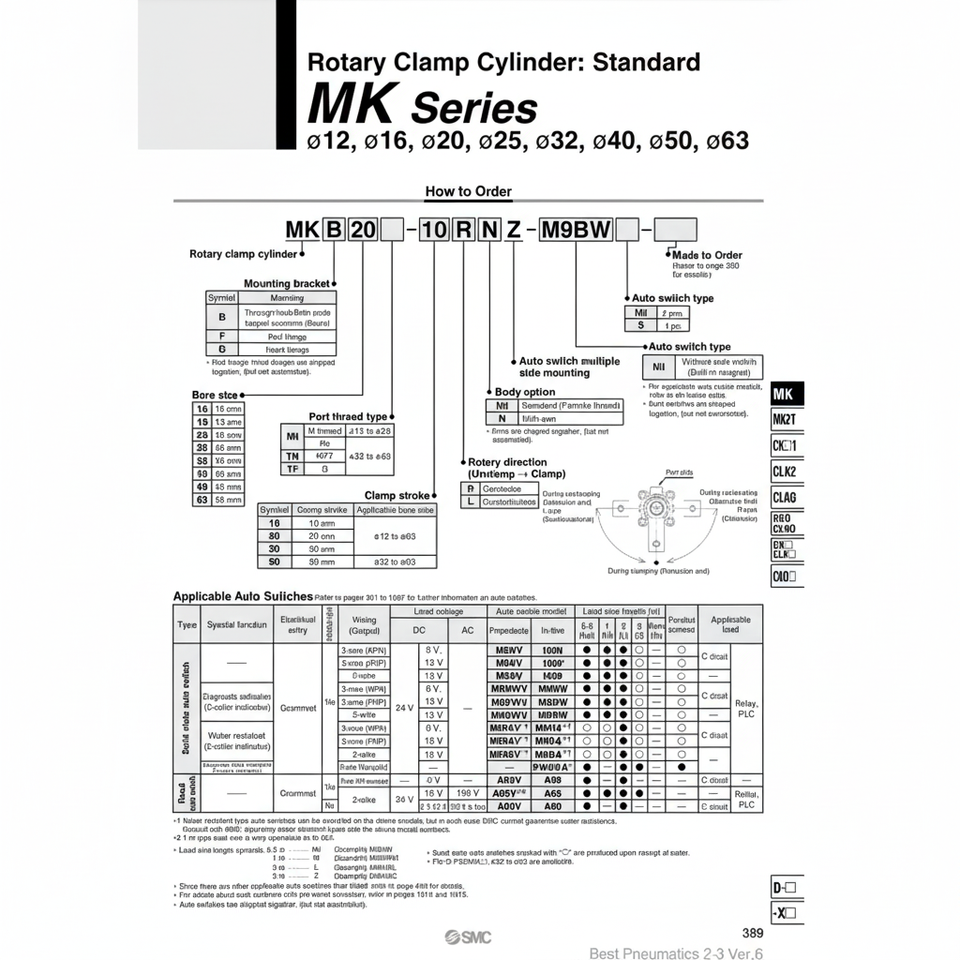 กระบอกลมแบบหมุน MKB16-30RZ ชิ้นส่วนนิวเมติก SMC