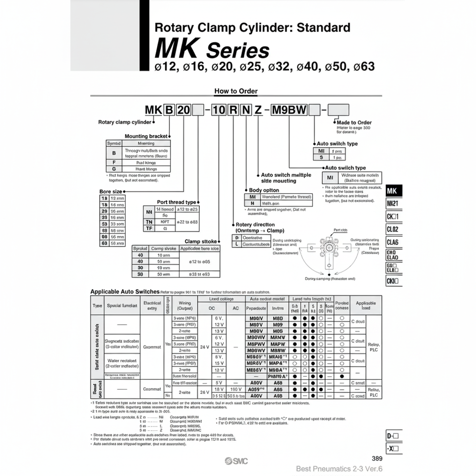 กระบอกลมแบบหมุน MKB32-20RNZ ชิ้นส่วนนิวเมติก SMC