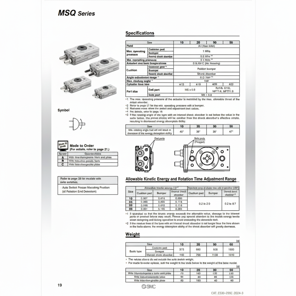 MSQ10R แบบจำลองโต๊ะหมุนนิวเมติก SMC