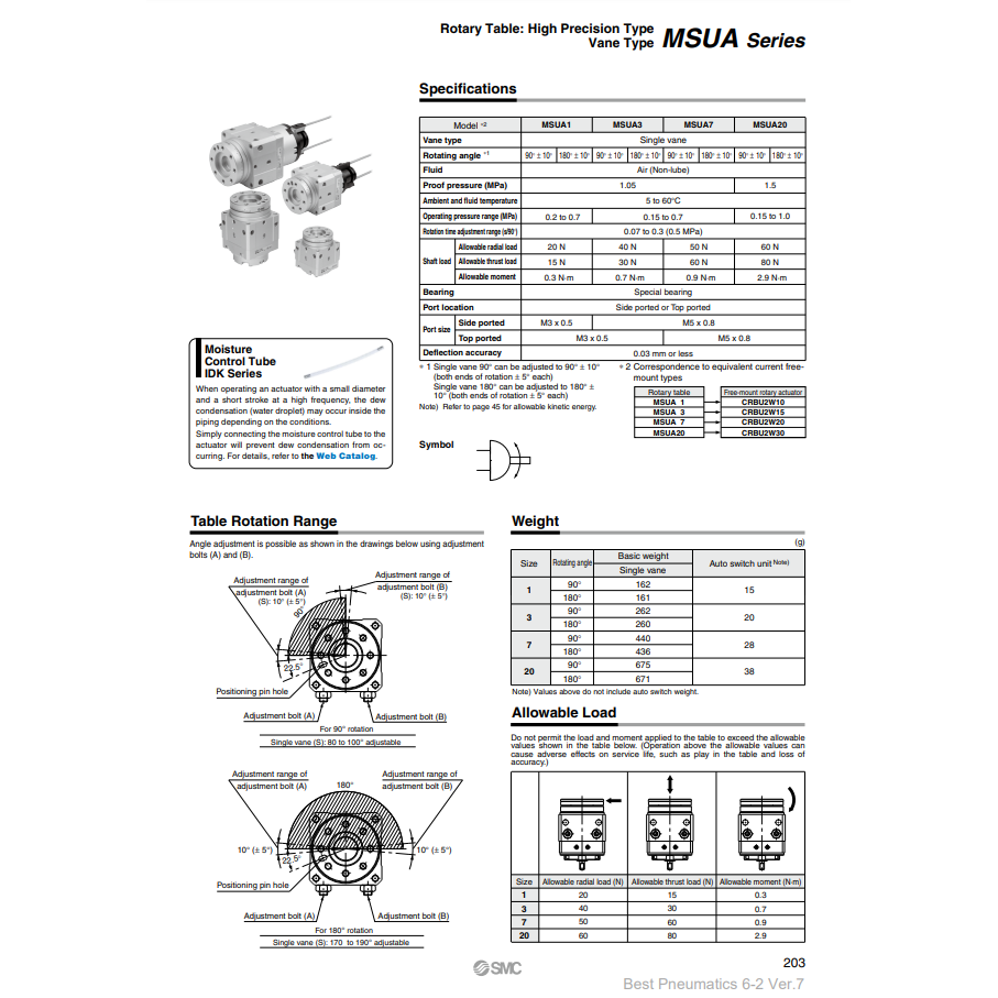 MSUA1-90S แบบจำลองโต๊ะหมุนนิวเมติก SMC