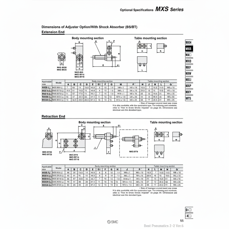 SMC นิวเมติกส์โช้คอัพถอน MXS-BT20ปลาย