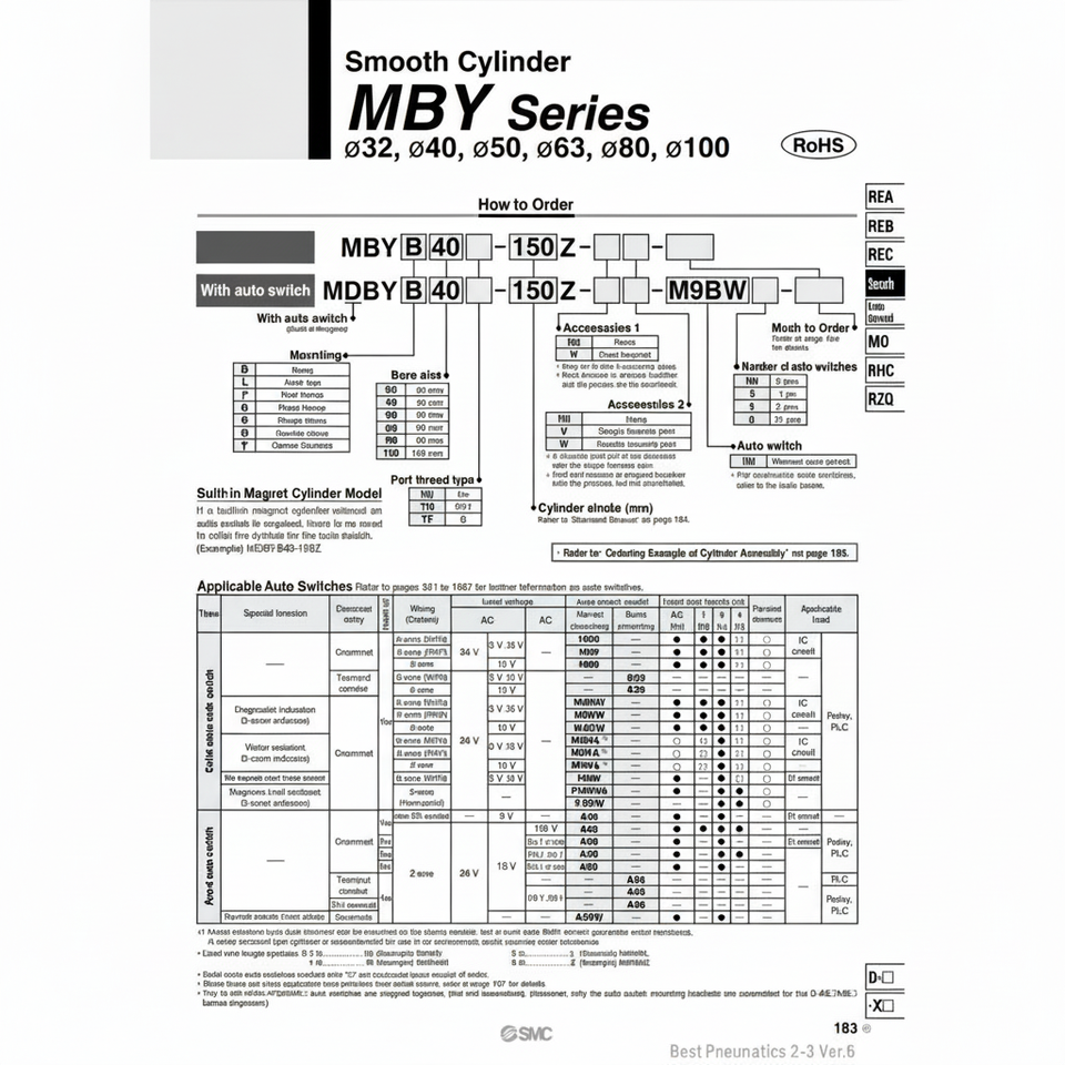 กระบอกลม MDBYF40-125Z SMC นิวเมติก