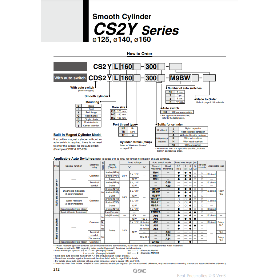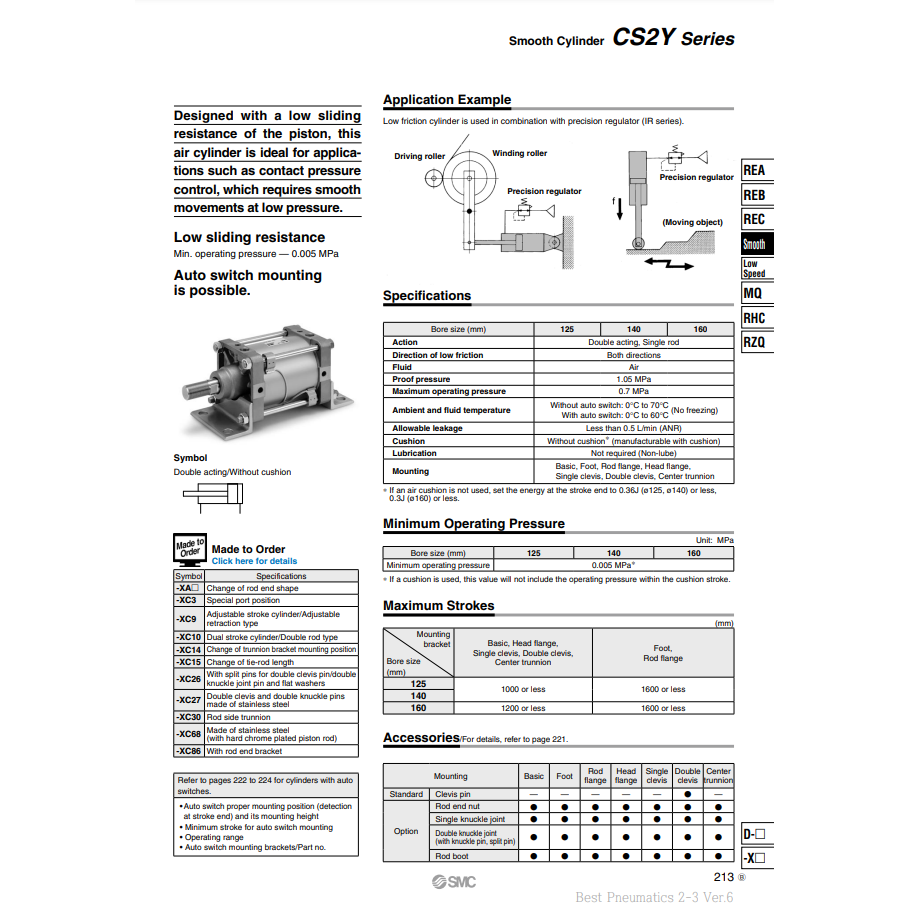 CS2YT125-370รุ่นกระบอกลมนิวเมติก SMC
