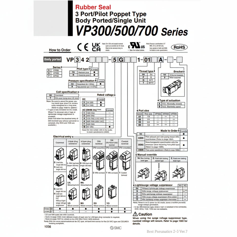 แบบจำลองวาล์วขดลวดแม่เหล็กไฟฟ้า SMC VP542-4DZ1-03A ชิ้นส่วนอุตสาหกรรม