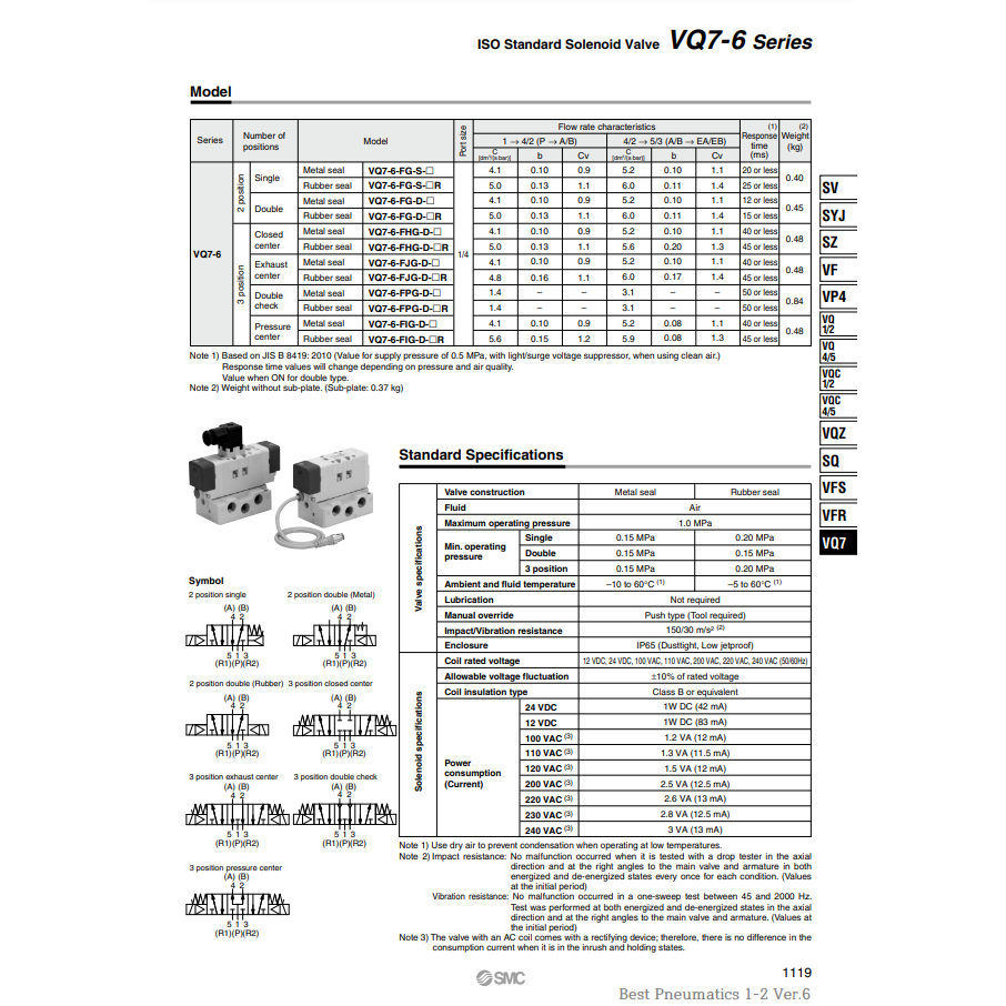 วาล์วโซลินอยด์นิวเมติก SMC วาล์วควบคุม VQ7-6-FG-S-3NR