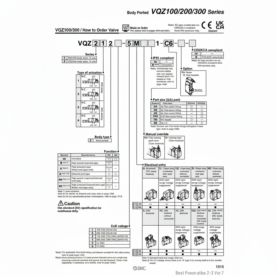 วาล์วโซลินอยด์นิวเมติก SMC วาล์วควบคุม VQZ312-5M1-C6