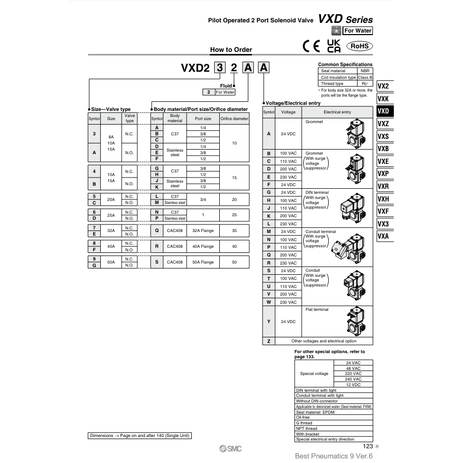 โซลินอยด์วาล์วควบคุม VXD252MAL แบบนิวเมติก SMC