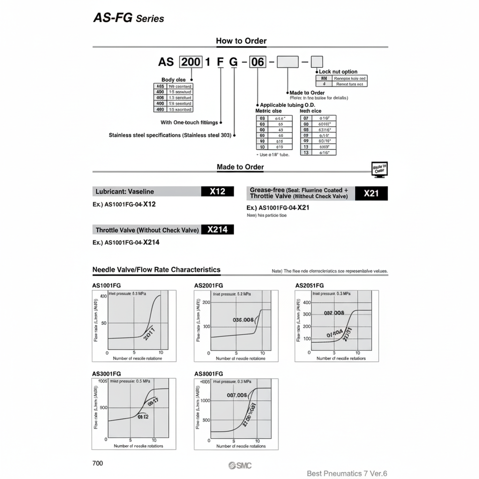อุปกรณ์ควบคุมความเร็วนิวเมติก SMC AS1001FG-06วาล์วเข็ม