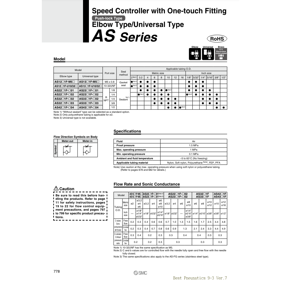 อุปกรณ์ควบคุมความเร็วนิวเมติก SMC AS2201F-02-23SA ชิ้นส่วนนิวเมติก