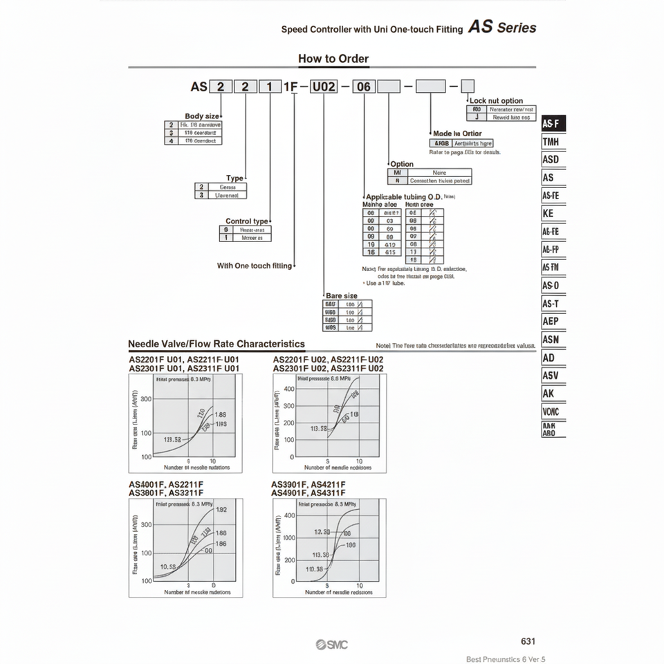 อุปกรณ์ควบคุมความเร็วนิวเมติก SMC AS3201F-U03-10N ชิ้นส่วนอุตสาหกรรม