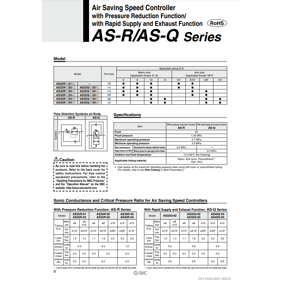 วาล์วลดความดัน AS42Q-04-12ควบคุมความเร็วนิวเมติก SMC