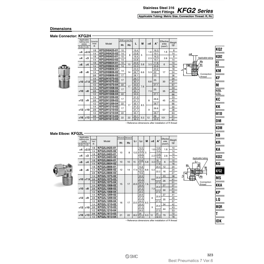 อุปกรณ์นิวเมติกส์จากสเตนเลสใส่316ชิ้นส่วนนิวเมติก SMC KFG2H0604-01