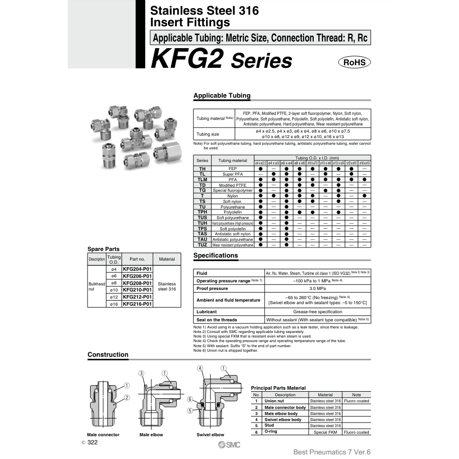 อุปกรณ์นิวเมติกส์จากสเตนเลสใส่316ชิ้นส่วนนิวเมติก SMC KFG2H0425-00