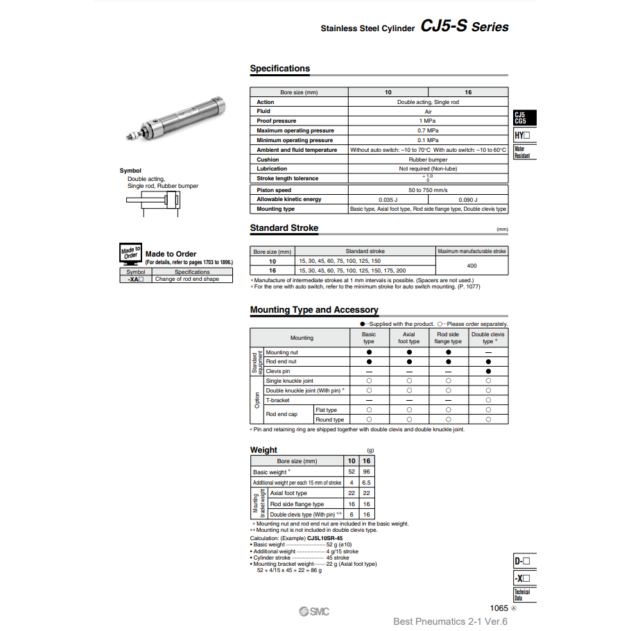 กระบอกสเตนเลสนิวเมติก SMC CDJ5D10SV-15-B ชิ้นส่วนนิวเมติก