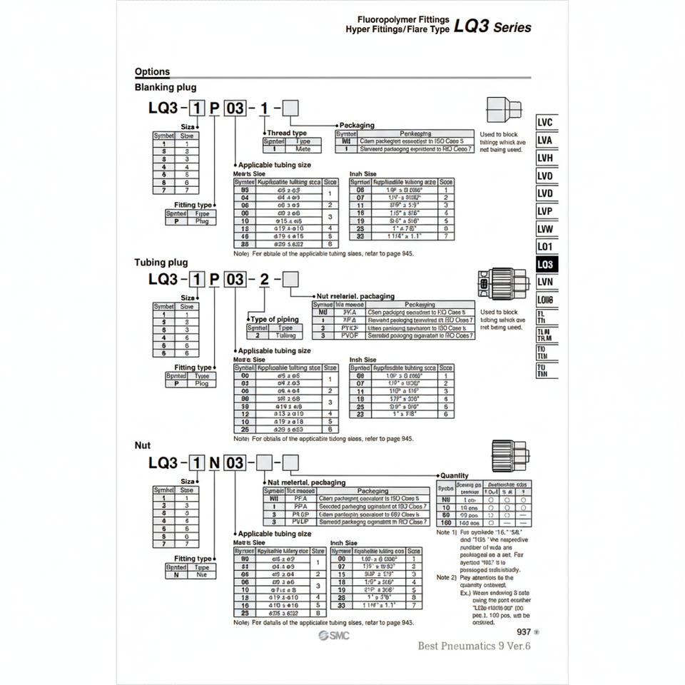 ปลั๊กต่อท่อลม LQ3-1P03-2อุปกรณ์เสริมและอะไหล่สำหรับเครื่องมือนิวเมติก SMC