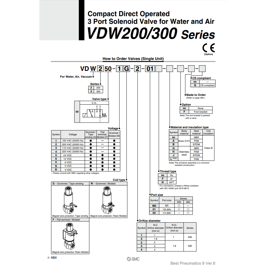วาล์วควบคุมวาล์วโซลินอยด์ VDW250-5G-1-01นิวเมติก SMC
