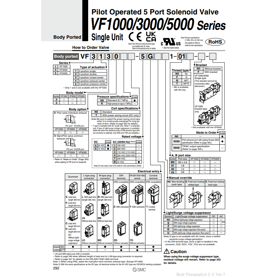 วาล์วโซลินอยด์วาล์วควบคุม VF5120K-4DZ1-03นิวเมติก SMC