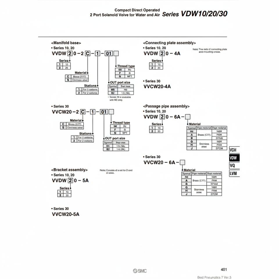 ชิ้นส่วนนิวเมติกประกอบท่ออากาศ VVDW20-6A SMC