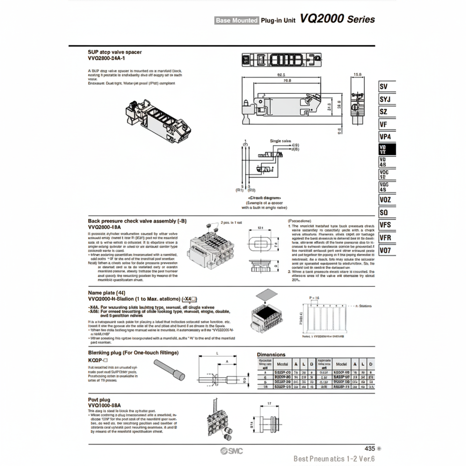 ชิ้นส่วนนิวเมติกแผ่นชื่อ VVQ2000-N-5 SMC