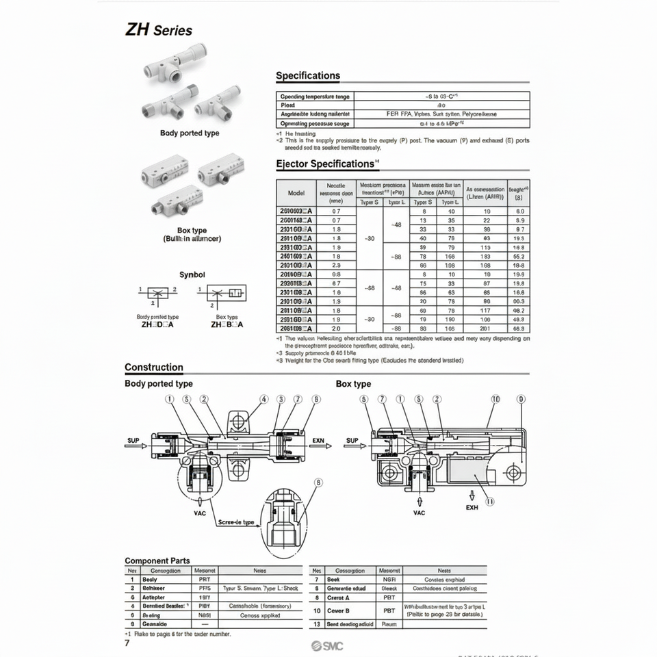 รุ่นเครื่องเป่าสุญญากาศระบบนิวเมติก SMC ZH10BSA-01-01ชิ้นส่วนนิวเมติกส์