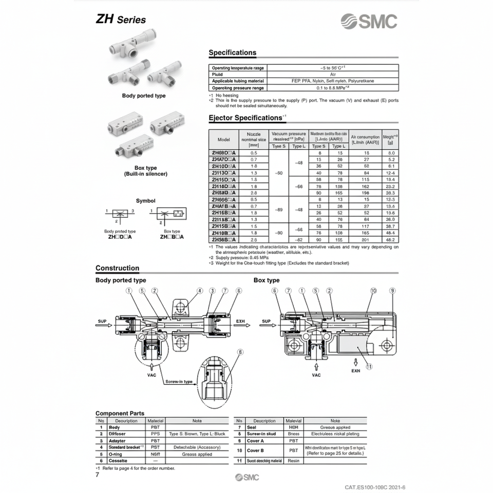 เครื่องเป่าสุญญากาศระบบนิวเมติก SMC ผลิตภัณฑ์เครื่องจักร ZH10DSA-06-01-08