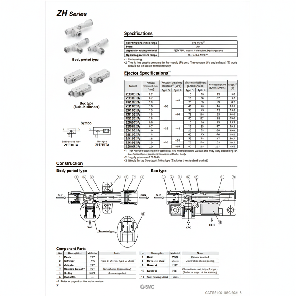 เครื่องพ่นสุญญากาศระบบนิวเมติกส์ SMC ชิ้นส่วนอุปกรณ์ ZH15BSA-08-10จัดการวัสดุ