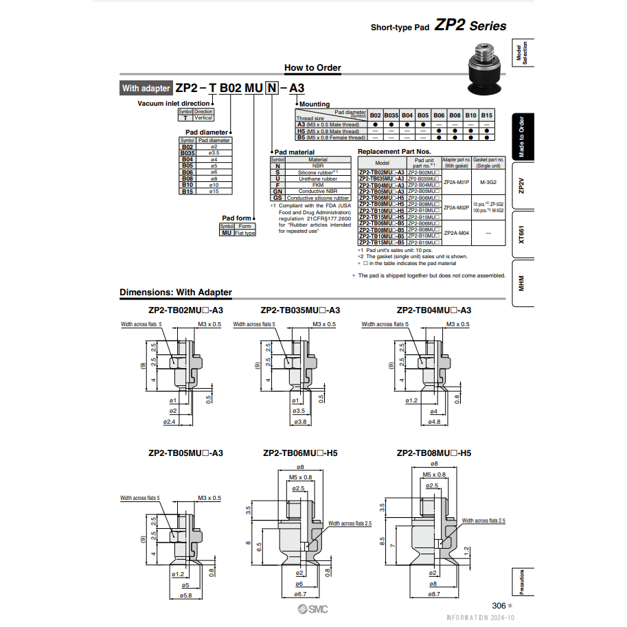 ZP2-TB06MUF-H5รุ่นแผ่นสุญญากาศสำหรับอุปกรณ์จัดการวัสดุแผ่นสุญญากาศจาก Smc pneumatics