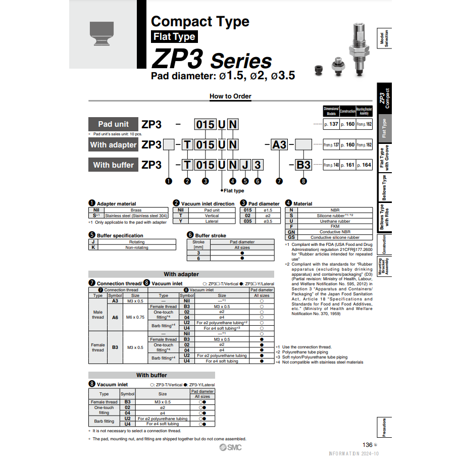 ZP3-T015UF-A3รุ่นแผ่นสุญญากาศสำหรับชิ้นส่วนอุปกรณ์จัดการวัสดุวัสดุวัสดุจาก Smc pneumatics