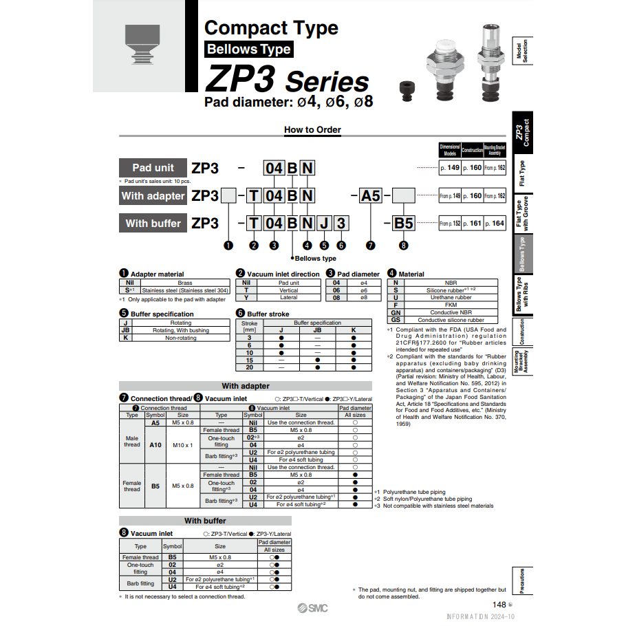 ZP3-Y10BFK10-04รุ่นแผ่นสุญญากาศสำหรับอุปกรณ์จัดการวัสดุแผ่นสุญญากาศจาก Smc pneumatics