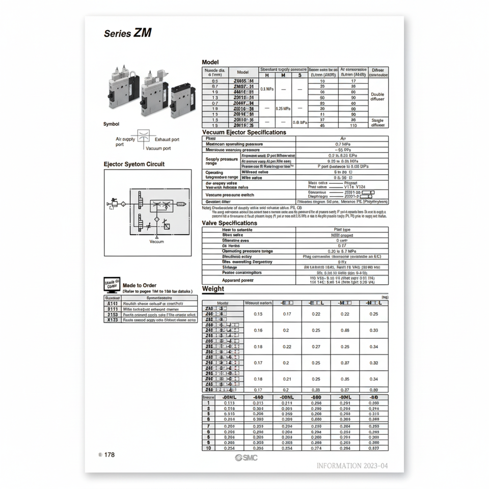 ชิ้นส่วนนิวเมติกส์ ZM131S-K5G-E15L ระบบสุญญากาศ SMC