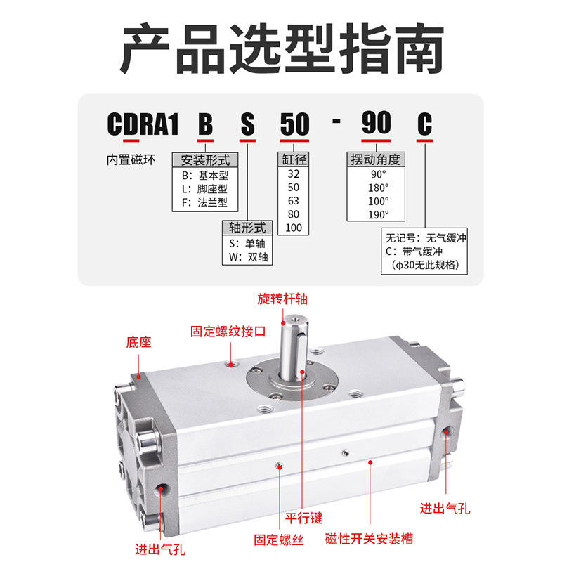 กระบอกสูบหมุนแบบหมุนเวียนสองทางชนิด SMC รุ่น CDRA1BS80-180C50/40/32/63/100-190C สำหรับเพลา รุ่นใหม่