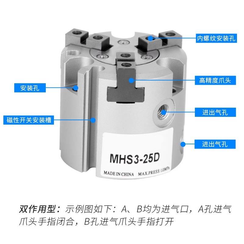 นิ้วจับชิ้นงานแบบนิวเมติกชนิด SMC แบบสองขากรรไกร สามขากรรไกร สี่ขากรรไกร รุ่น MHS2/3/4-16D20D25D32D40D สำหรับที่จับเครื่องมือ