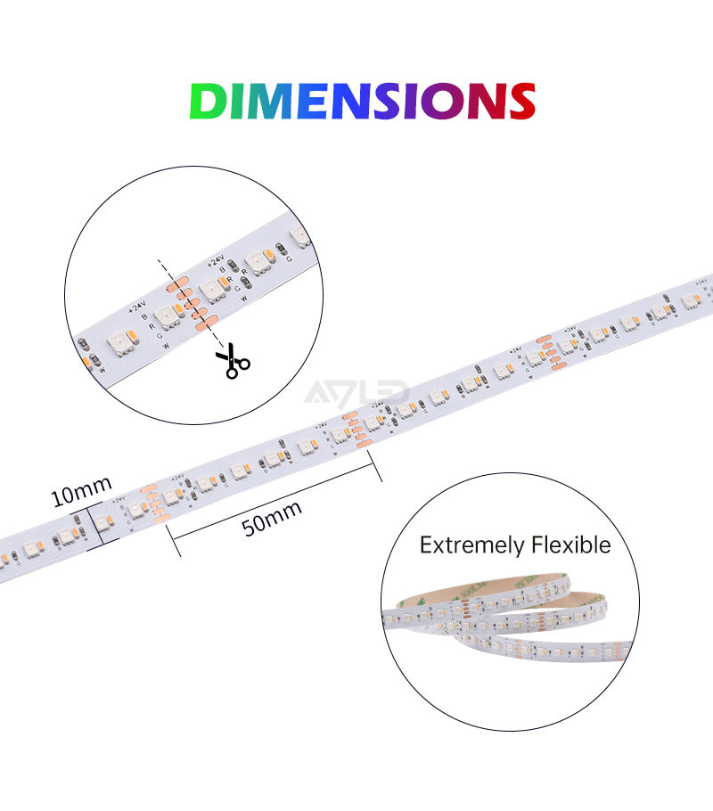 แถบไฟ LED เปลี่ยนสี RGB+W 240 ดวง/เมตร ขนาด 10 มม.
